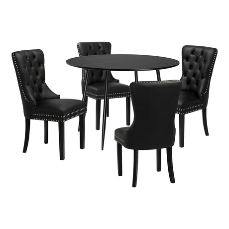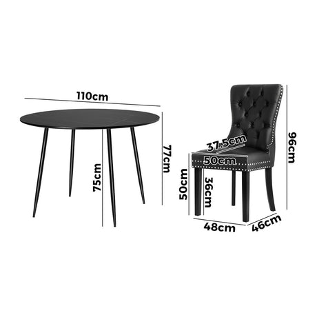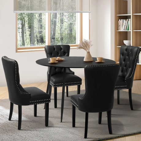 Oikiture 110cm Round Dining Table with 4PCS Chairs Velvet Black