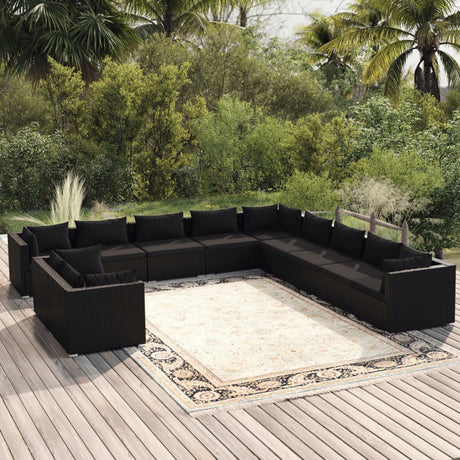 10 Piece Garden Lounge Set with Cushions Poly Rattan Black