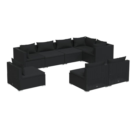 8 Piece Garden Lounge Set with Cushions Poly Rattan Black