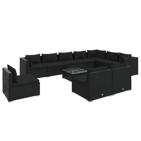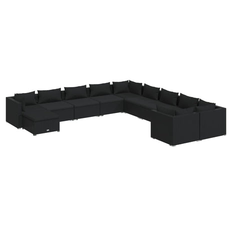 12 Piece Garden Lounge Set with Cushions Poly Rattan Black