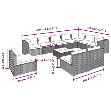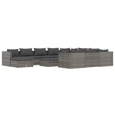 10 Piece Garden Lounge Set with Cushions Poly Rattan Grey