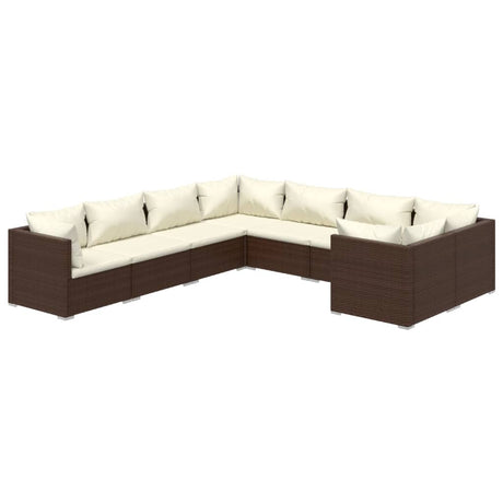 8 Piece Garden Lounge Set with Cushions Poly Rattan Brown