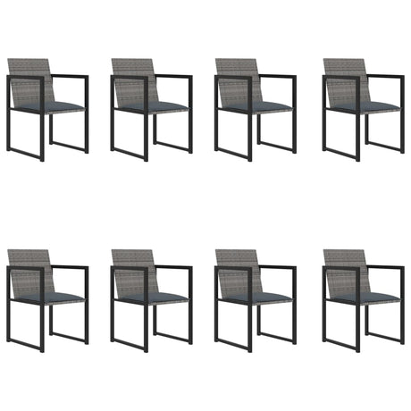 9 Piece Outdoor Dining Set with Cushions Poly Rattan Grey