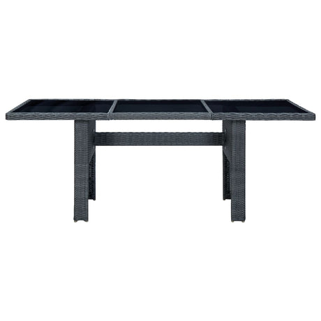 Garden Table Dark Grey Poly Rattan and Tempered Glass