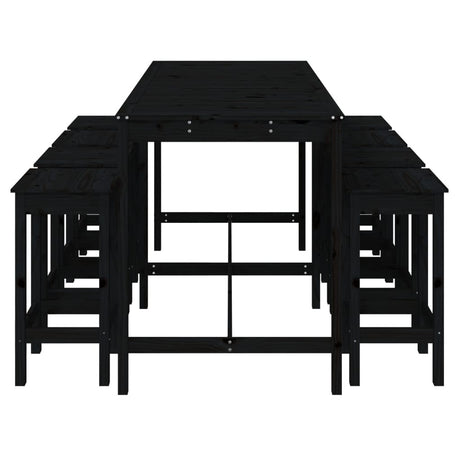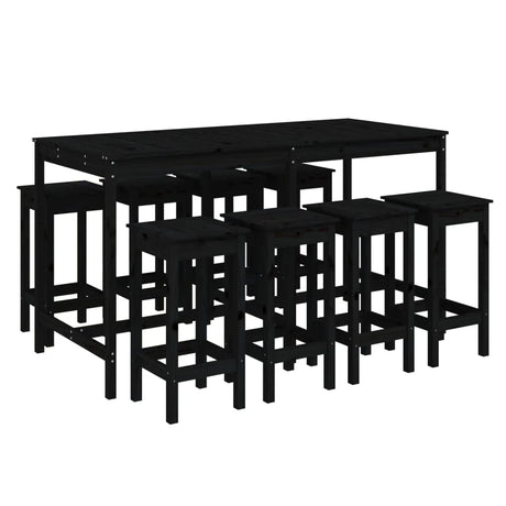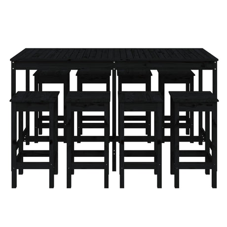9 Piece Garden Bar Set Black Solid Wood Pine