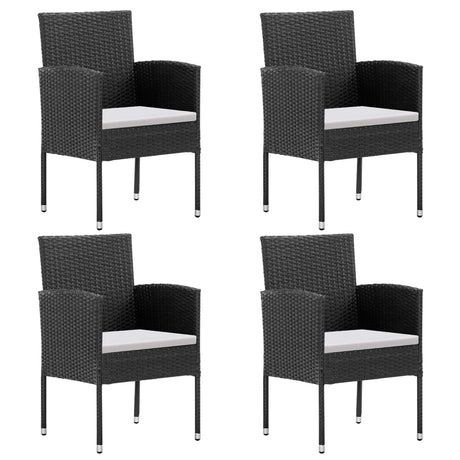 5 Piece Garden Dining Set with Cushions Black Poly Rattan