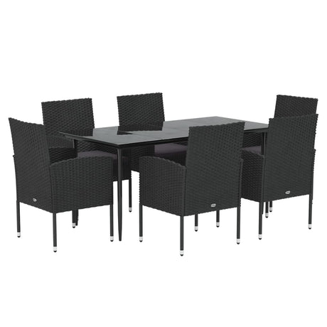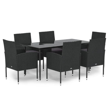 7 Piece Garden Dining Set with Cushions Black Poly Rattan