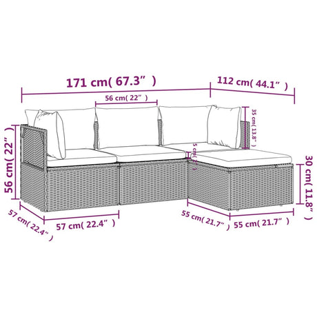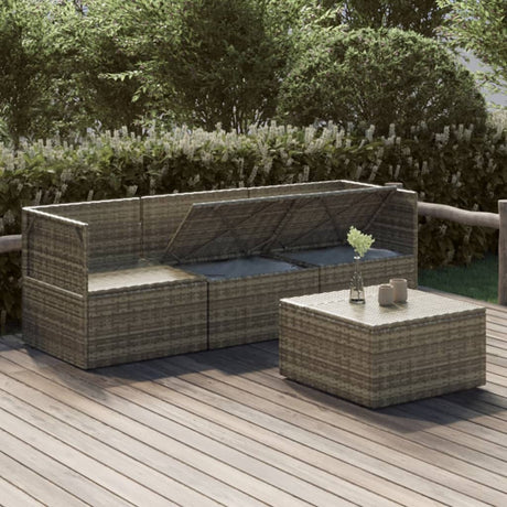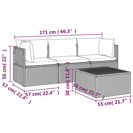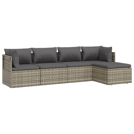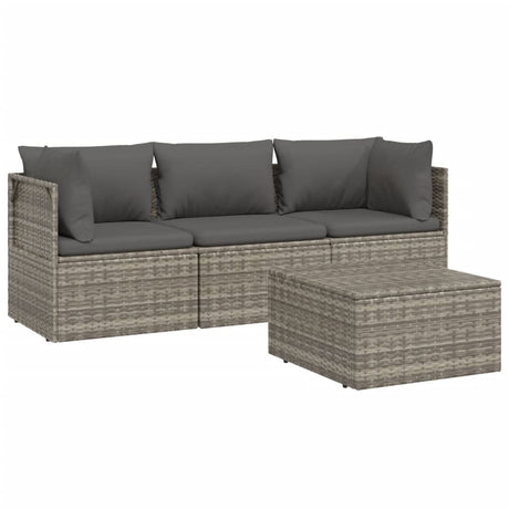 4 Piece Garden Lounge Set with Cushions Grey Poly Rattan