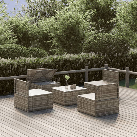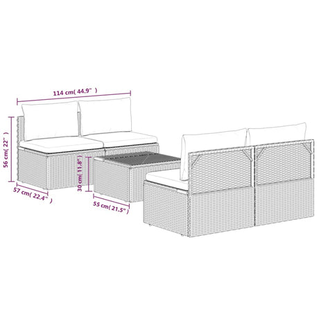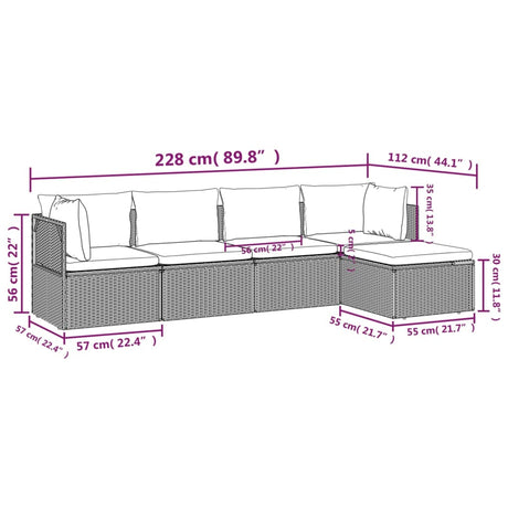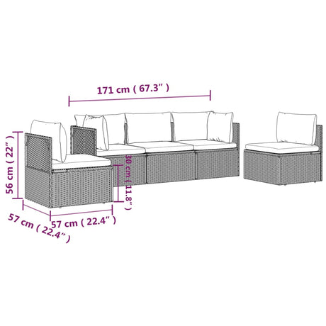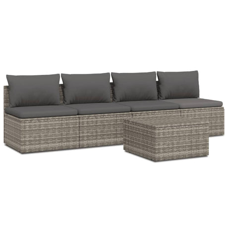 5 Piece Garden Lounge Set with Cushions Grey Poly Rattan