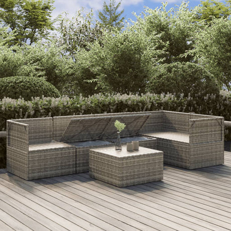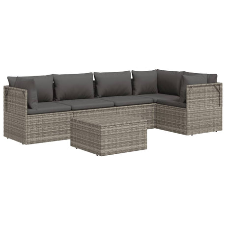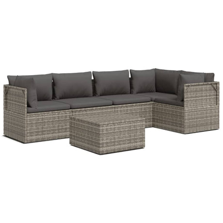 6 Piece Garden Lounge Set with Cushions Grey Poly Rattan