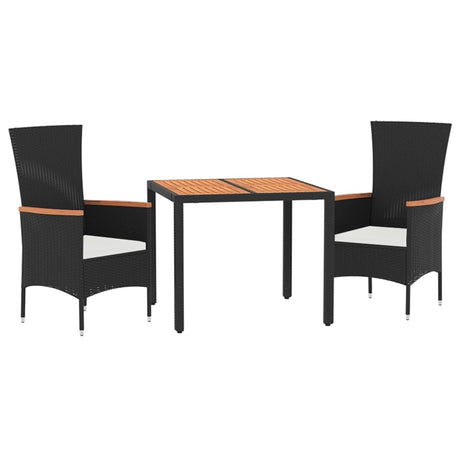 3 Piece Garden Dining Set with Cushions Black Poly Rattan