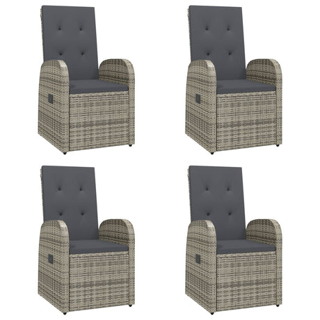 5 Piece Garden Dining Set with Cushions Grey Poly Rattan