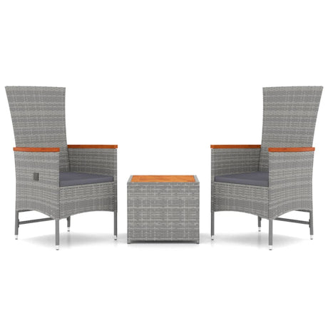 3 Piece Garden Lounge Set Grey Poly Rattan&Solid Wood Acacia