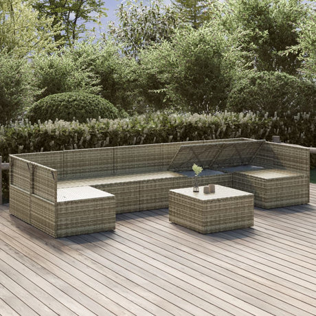 10 Piece Garden Lounge Set with Cushions Grey Poly Rattan