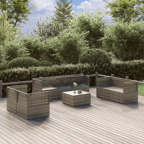 9 Piece Garden Lounge Set with Cushions Grey Poly Rattan