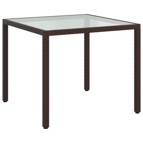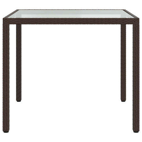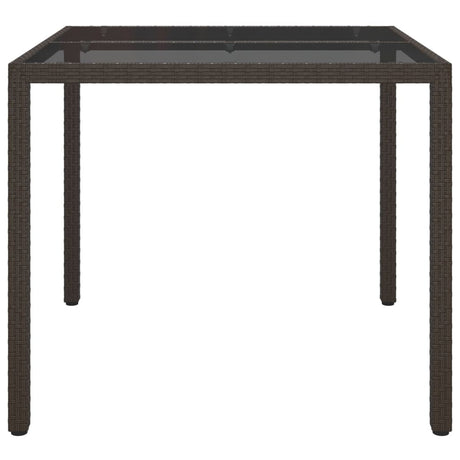 Garden Table 90x90x75 cm Tempered Glass and Poly Rattan Brown