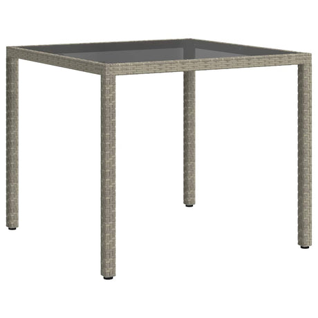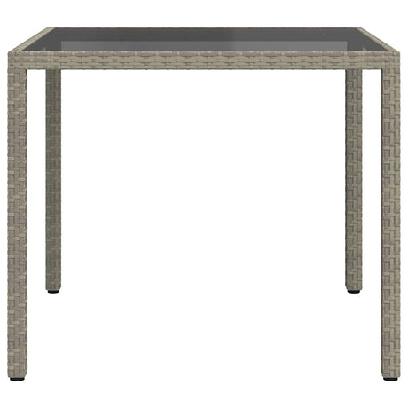Garden Table 90x90x75 cm Tempered Glass and Poly Rattan Grey