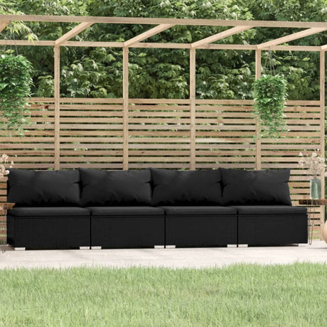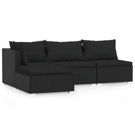 4 Piece Garden Lounge Set with Cushions Black Poly Rattan