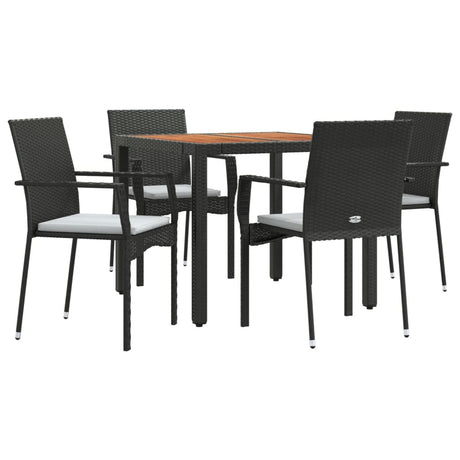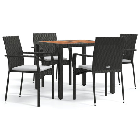 5 Piece Garden Dining Set with Cushions Black Poly Rattan
