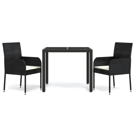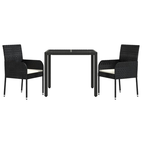 3 Piece Garden Dining Set with Cushions Black Poly Rattan