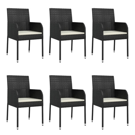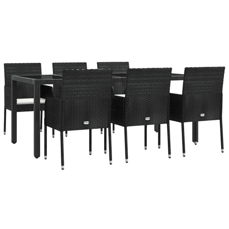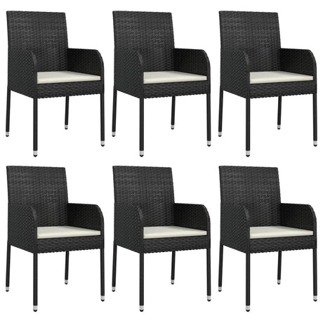 7 Piece Garden Dining Set with Cushions Black Poly Rattan