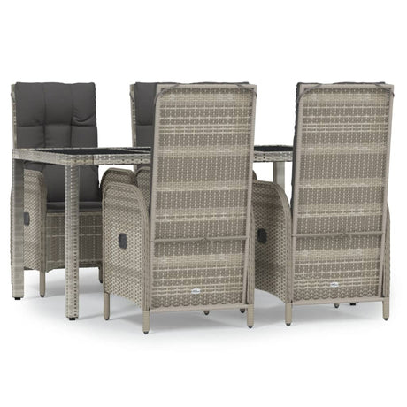 5 Piece Garden Dining Set with Cushions Grey Poly Rattan