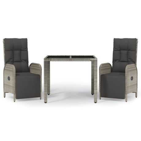 3 Piece Garden Dining Set with Cushions Grey Poly Rattan