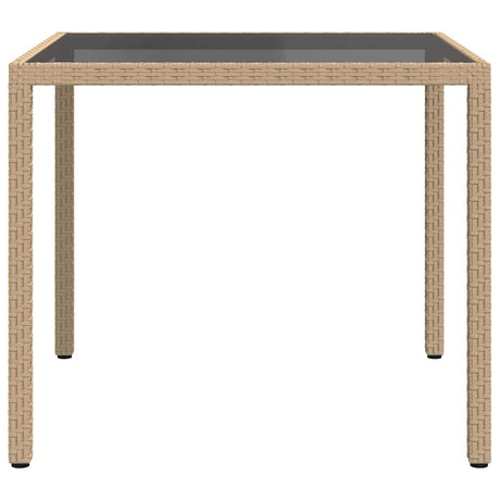 Garden Table 90x90x75 cm Tempered Glass and Poly Rattan Beige