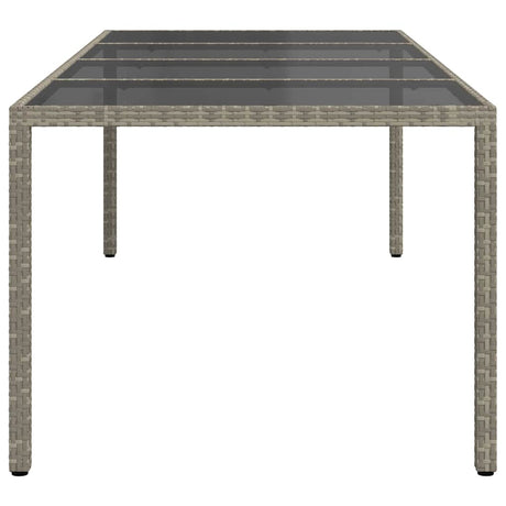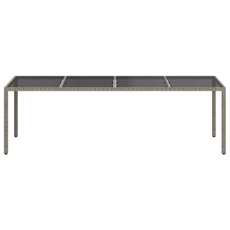 Garden Table Grey 250x100x75 cm Tempered Glass and Poly Rattan