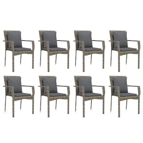 9 Piece Garden Dining Set with Cushions Grey Poly Rattan