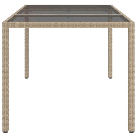 Garden Table Beige 190x90x75 cm Tempered Glass and Poly Rattan