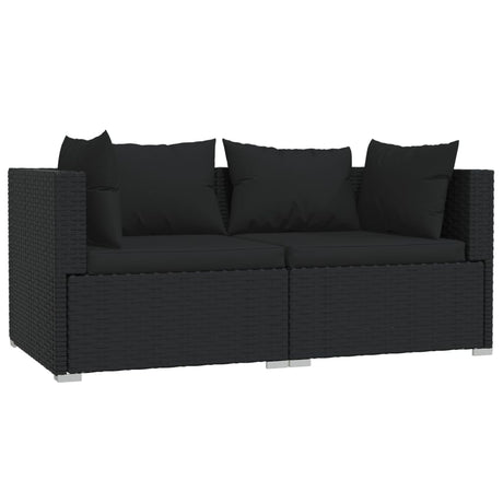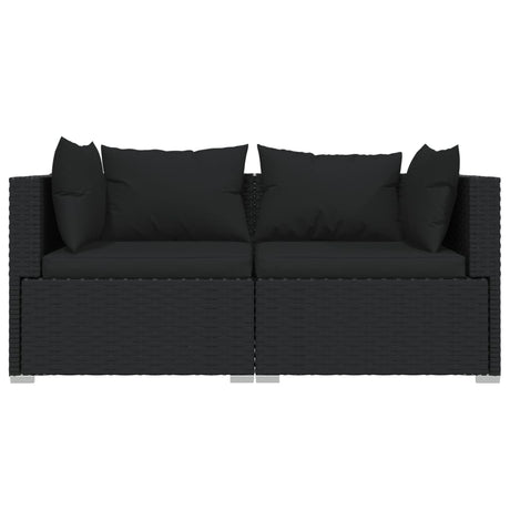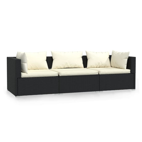 3 Piece Garden Lounge Set with Cushions Black Poly Rattan