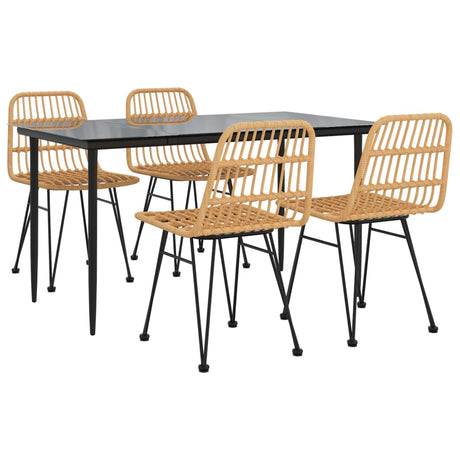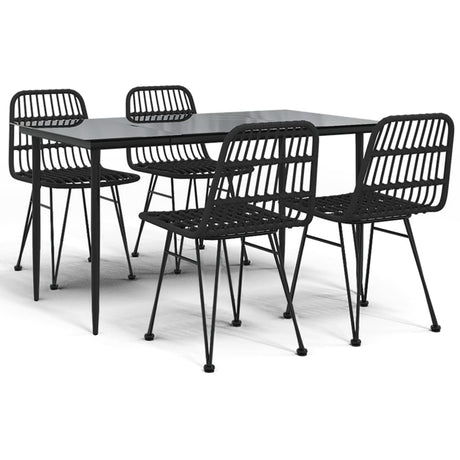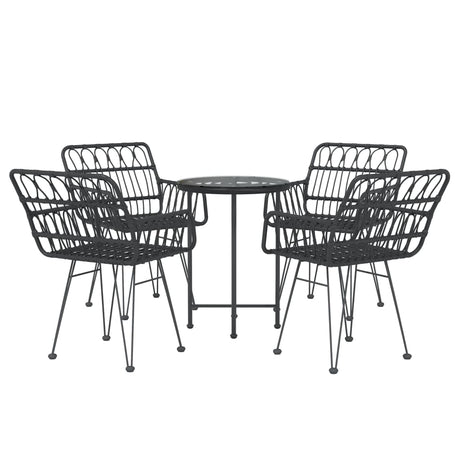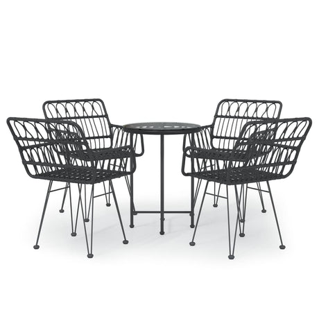 5 Piece Garden Dining Set with Cushions Black Poly Rattan