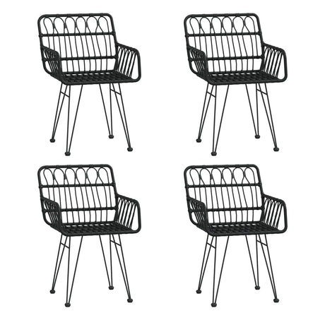 4 Piece Garden Lounge Set with Cushions Black Poly Rattan