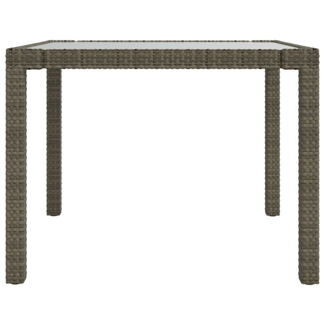 Garden Table 90x90x75 cm Tempered Glass and Poly Rattan Grey