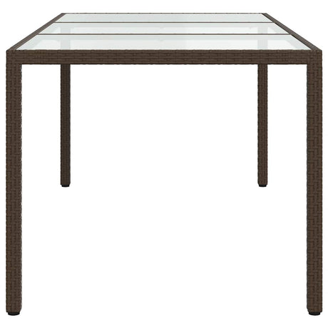 Garden Table Brown 190x90x75 cm Tempered Glass and Poly Rattan