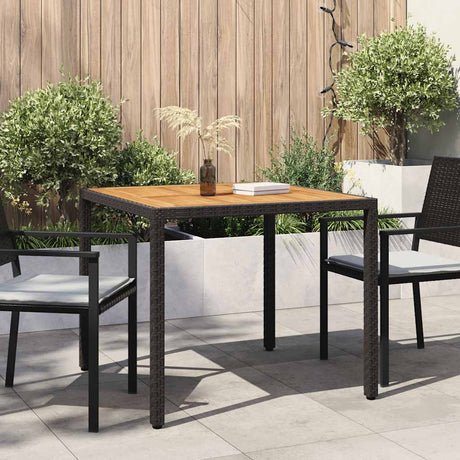 Garden Table 90x90x75 cm Poly Rattan and Acacia Wood Black
