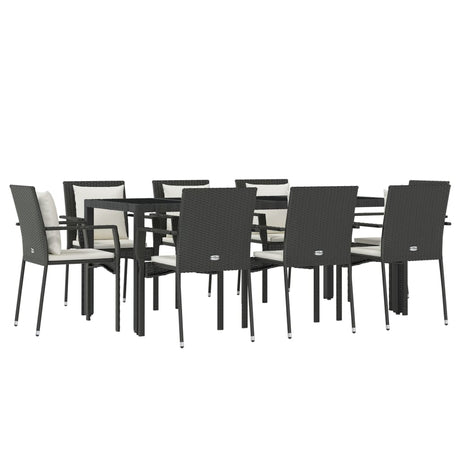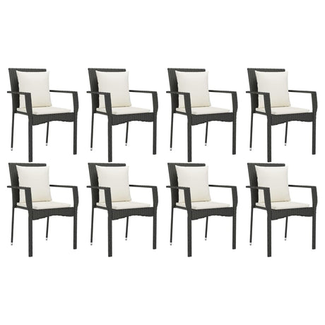9 Piece Garden Dining Set with Cushions Black Poly Rattan