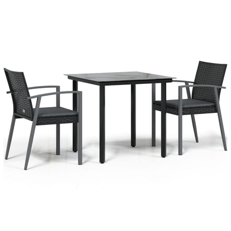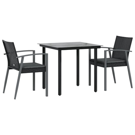 3 Piece Garden Bistro Set with Cushions Black Poly Rattan