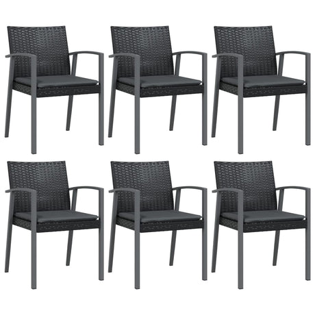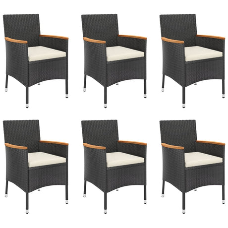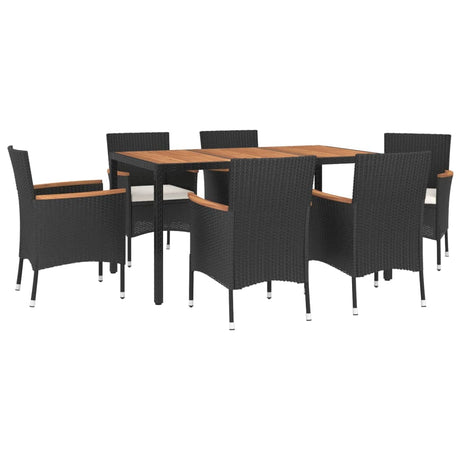 7 Piece Garden Dining Set with Cushions Black Poly Rattan