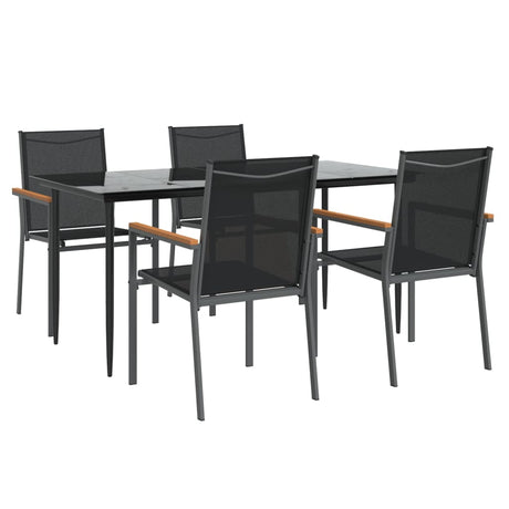 5 Piece Garden Dining Set Black Textilene and Steel