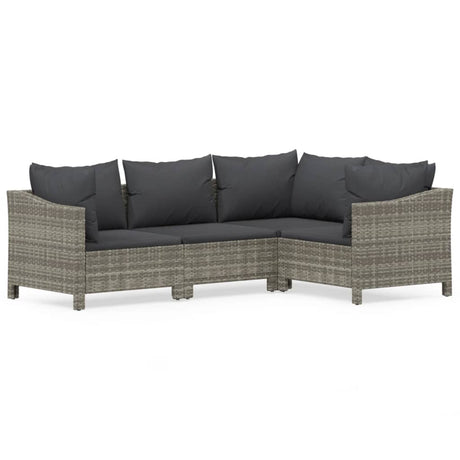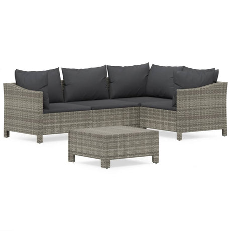 4 Piece Garden Lounge Set with Cushions Grey Poly Rattan