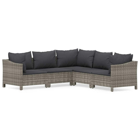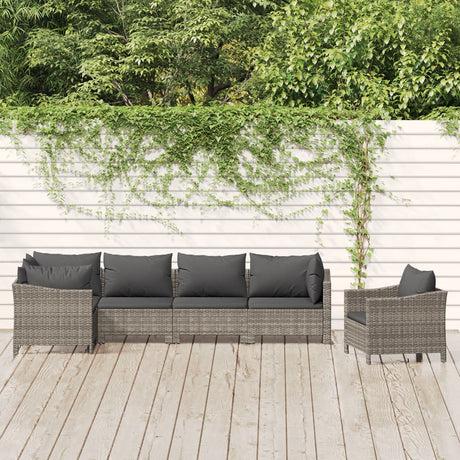 5 Piece Garden Lounge Set with Cushions Grey Poly Rattan