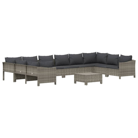 11 Piece Garden Lounge Set with Cushions Grey Poly Rattan