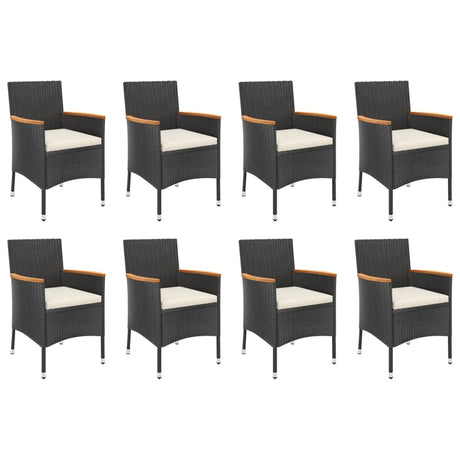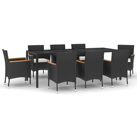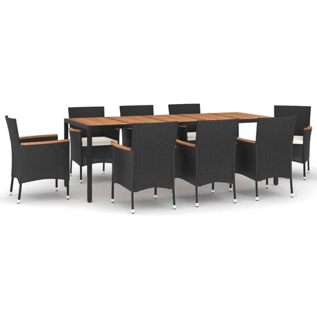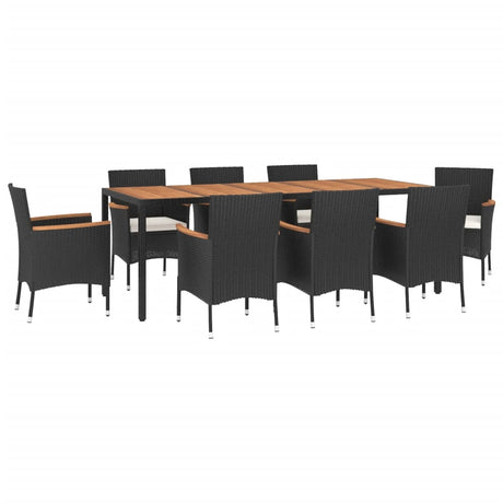 9 Piece Garden Dining Set with Cushions Black Poly Rattan