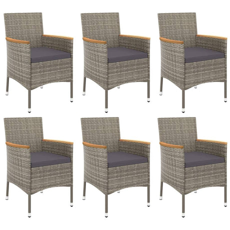 7 Piece Garden Dining Set with Cushions Grey Poly Rattan