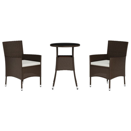 3 Piece Garden Bistro Set with Cushions Brown Poly Rattan