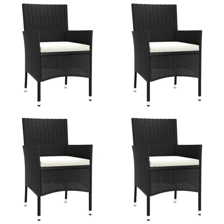 5 Piece Garden Bistro Set with Cushions Black Poly Rattan