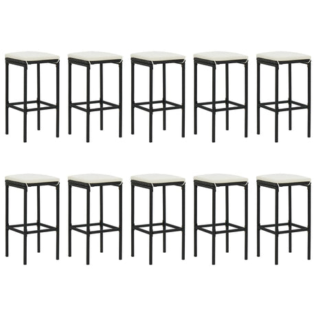 11 Piece Garden Bar Set with Cushions Black Poly Rattan