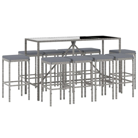 11 Piece Garden Bar Set with Cushions Grey Poly Rattan